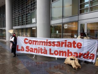 Protesta di fronte alla Regione Lombardia: “È arrivata la Befana, carbone per la Giunta”
