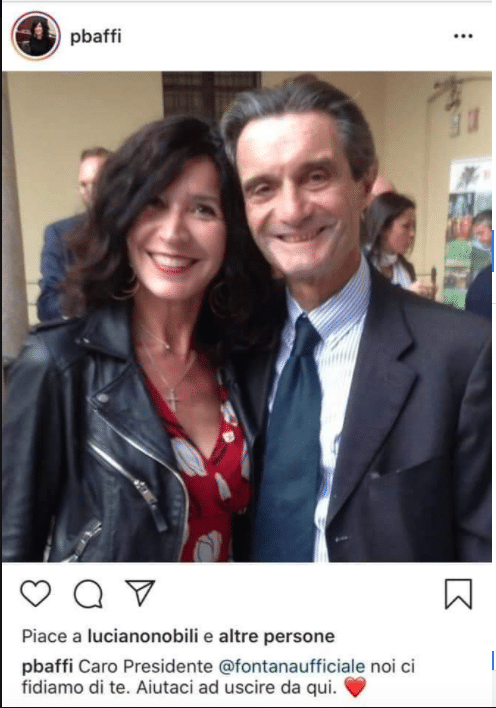 La foto pubblicata da Patrizia Baffi (IV) con Attilio Fontana, presidente leghista della Lombardia