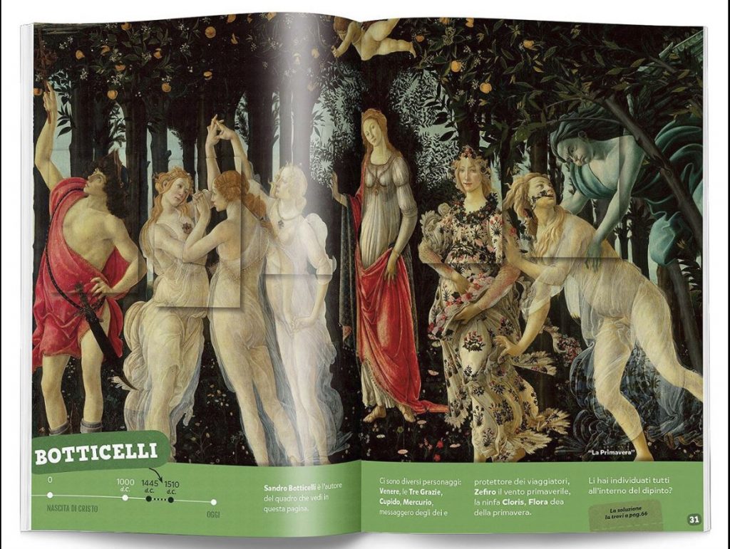 Dall’Antico Egitto delle Piramidi alla Francia dell’Impressionismo francese, i bambini impareranno con il piacere del gioco, dei colori. Con gli stimoli giusti, insomma. E i genitori potranno vederli fare il più classico gioco del “ce l’ho, mi manca” con le immagini della Gioconda o della Primavera del Botticelli piuttosto che con quelle di Francesco Totti e Roberto Baggio.