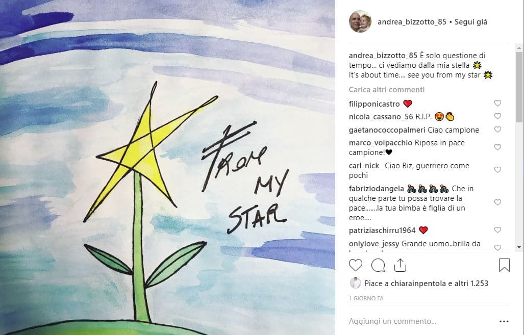 Ad annunciare la morte di Andrea è stata Rebecca Frasson, autrice della prefazione del libro, che sulla pagina Facebook ha scritto poche righe, intrise di amore e dolore: “Andrea se ne è andato questa notte. Ma noi tutti sappiamo che la bicicletta non si ferma: lui ha pedalato così tanto e ora tocca a noi. Ciao Biz. È stato un onore. È stato folle. È stato bellissimo”.