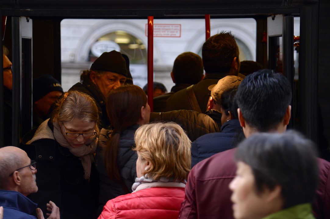 Quando l’8 giunge alla fermata, riuscire a salire è quasi impossibile, ma tra una spinta e qualche piccolo diverbio si riesce a superare la barriera.