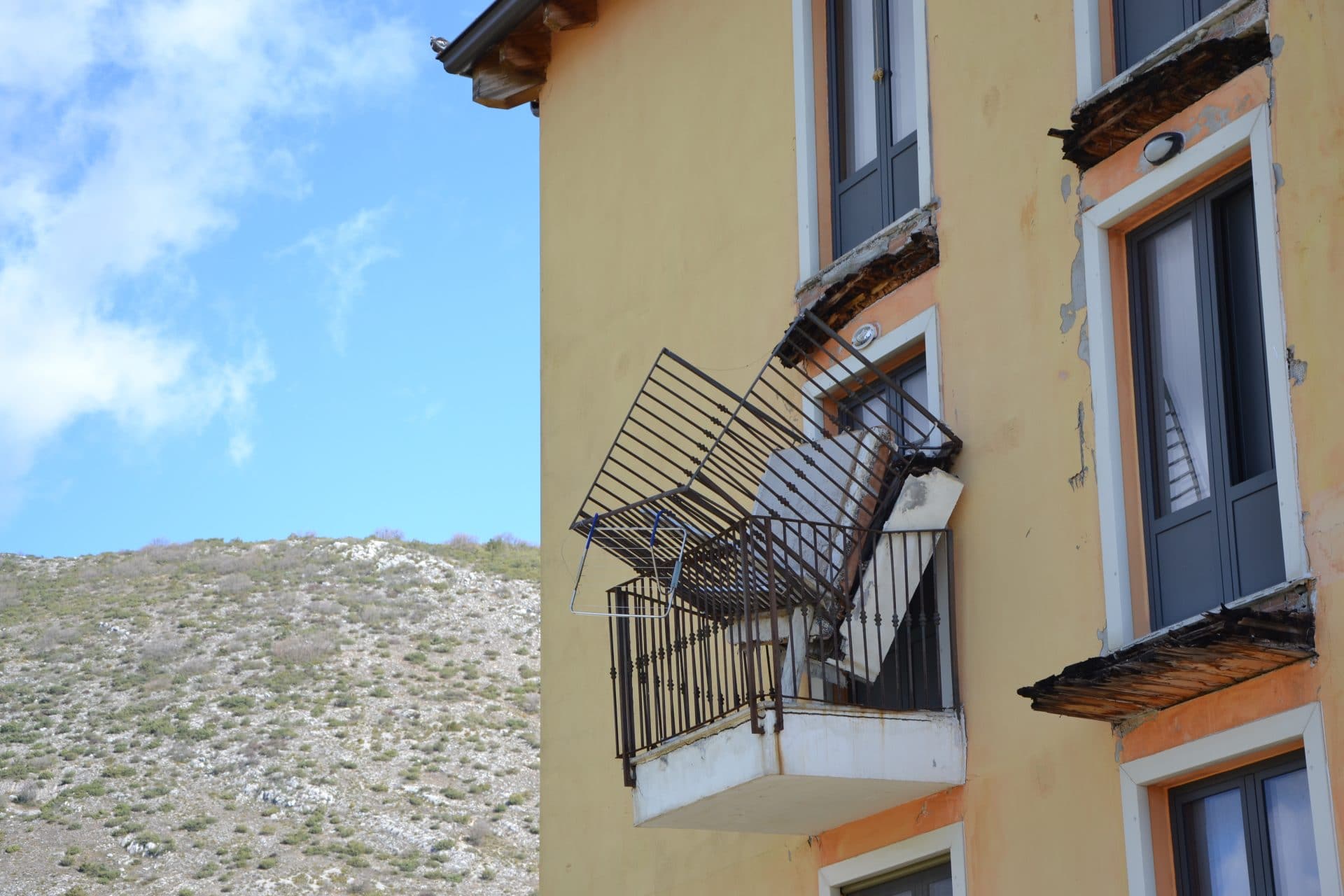 Il blocco è stato ritenuto inagibile e le famiglie che lo abitavano, come trottole, sono state trasferite in altre case. In quelle che sorgono nella parte destra del complesso, dove le case, dopo dieci anni, sembrano impeccabili. I balconi sono riparati da tettoie che li proteggono. Alle finestre le tende socchiuse e i panni stesi ad asciugare mostrano la vita che va avanti, nell’attesa di capire se quella sarà una soluzione definitiva o se la possibilità di tornare a casa esiste ancora.