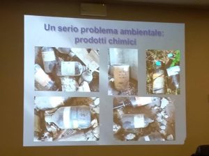 “Non c’è solo l’amianto disgregato, ci sono i prodotti chimici, gli antibiotici, i residui di produzione”, spiega il professor Turchi. “C’è una quantità incredibile di reagenti chimici, come se avessero di fretta abbandonato la fabbrica lasciandoli lì, è incomprensibile”.