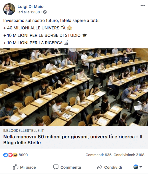 Nel 2017 al fondo per il finanziamento ordinario erano stati assegnati 7,3 miliardi di euro, come spiega il Post. I 40 milioni sono solo un incremento della dotazione pari allo 0,5 per cento. Si tratta di un aumento praticamente identico a quello che fece ad esempio Renzi nel 2016 e che non giustifica quindi il grande entusiasmo di molti esponenti del governo. Ancora meno se si paragona a quello che fece il governo Gentiloni nel 2017, che aumentò il fondo per borse di studio di 20 milioni, 10 in più rispetto agli attuali.