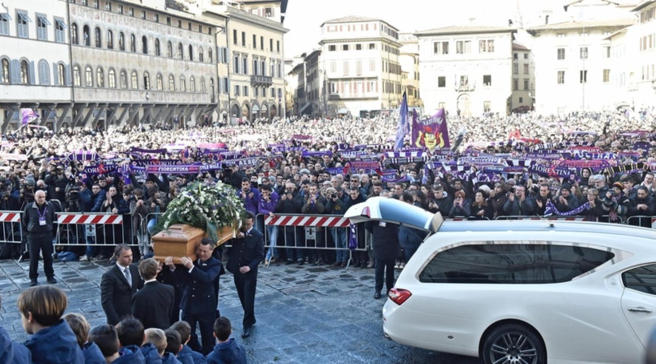 Oggi, 8 marzo 2018, nella Basilica di Santa Croce a Firenze si sono tenuti i funerali, e una grande folla ha partecipato. Un capitano, c’è solo un capitano, hanno urlato i tifosi della Fiorentina riuniti davanti la Basilica.