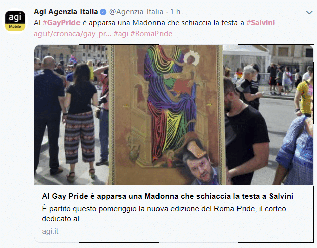 GAY PRIDE 2019 MADONNA SALVINI – Il Gay Pride a Roma è arrivato anche quest’anno. L’edizione 2019 ha visto il corteo dedicato alla comunità LGBTQ animare l’intera capitale, ma un dettaglio ha destato l’interesse del popolo del web.