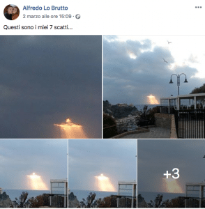 Lo Brutto ha scelto come didascalia “Il Cristo della luce sul mare di Agropoli”. Nella foto le nuvole attraversate dai raggi del sole al tramonto sul golfo di Salerno ricordano l’immagine del Cristo Redentore, la statua rappresentante Gesù Cristo collocata sulla cima della montagna del Corcovado a picco sulla città di Rio de Janeiro.
