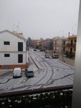 La grandine, mista a neve, ha ricoperto la città e la spiaggia. I grossi chicchi hanno raggiunto la dimensione di palline da baseball.