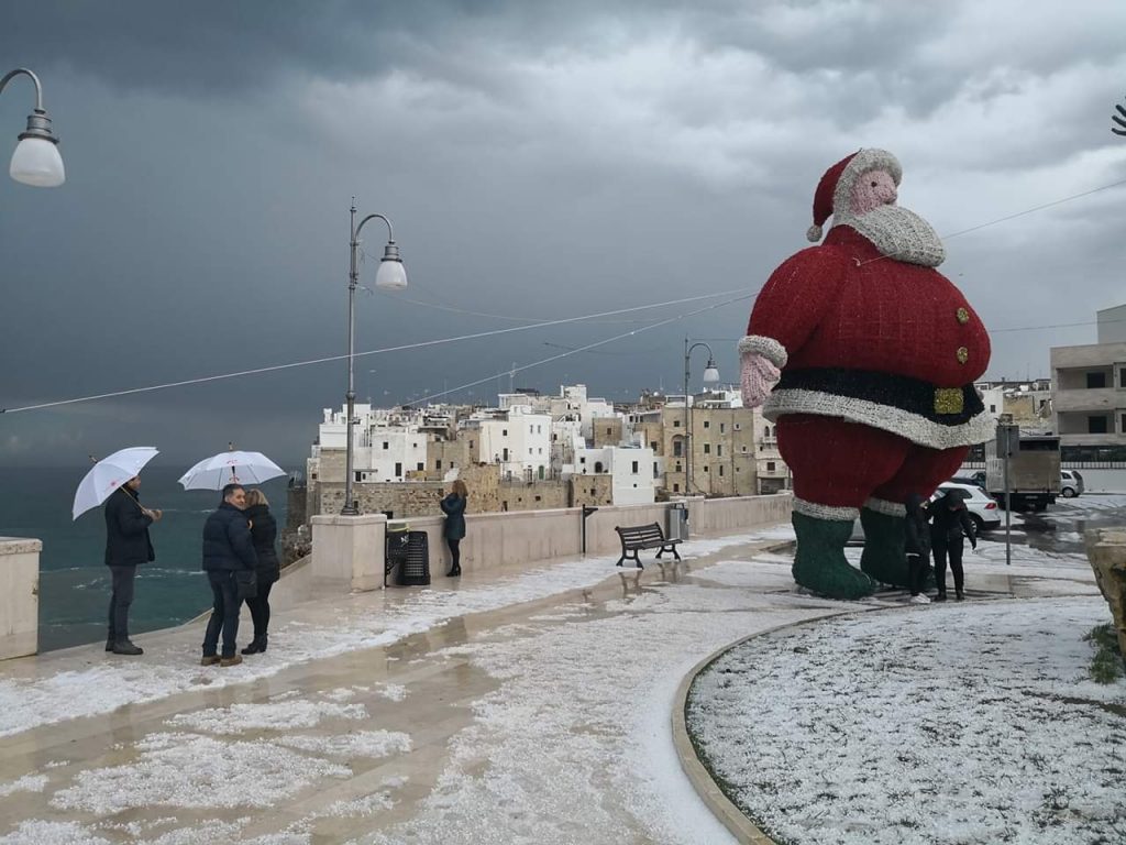 Polignano a mare, uno dei borghi più belli di Puglia e d’Italia, è stato sommerso da un’abbondante grandinata. Un temporale si è abbattuto sul paese che si affaccia sul Mar Adriatico.