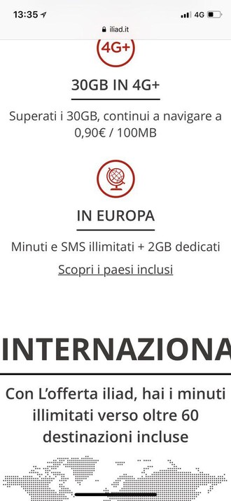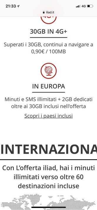 Inizialmente era stato scritto che nel pacchetto erano compresi, per quanto riguarda il traffico in roaming, 2 giga, oltre i 30 giga di base nazionali. Ma in realtà in Europa gli utenti Iliad possono utilizzare solo i 2 giga di dati dedicati al roaming.