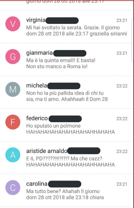 Nel creare la mailing list necessaria per raggiungere tutti gli studenti, i numerosi indirizzi mail non sono stati contrassegnati come in copia, per cui le risposte arrivavano a tutte le persone presenti nella lista.