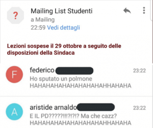 La notizia della sospensione delle lezioni all’università di Roma la Sapienza è stata data agli studenti tramite mail, ma la segreteria ha ricevuto delle risposte, sempre via mail, che non si aspettava.