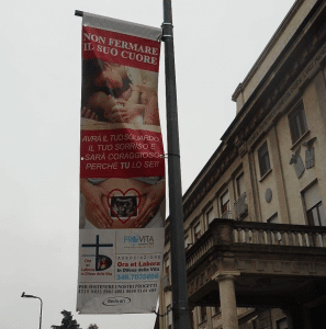 Il cartellone pro-life è apparso di fronte all'entrata della clinica ginecologica più famosa di Milano che registra un un tasso di medici obiettori tra i più bassi della città