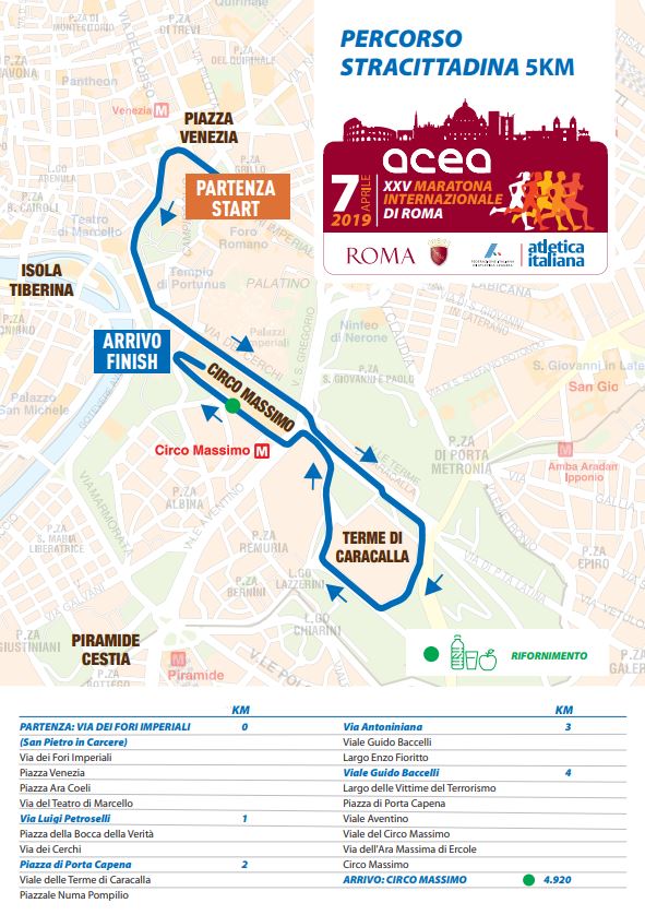 Per quanto riguarda invece la corsa non competitiva, quella da 5 chilometri, la partenza è prevista sempre su via dei Fori Imperiali, mentre il traguardo si troverà all’interno del Circo Massimo.