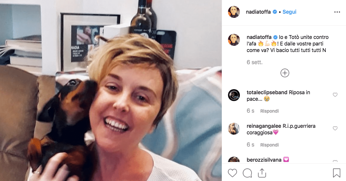Nadia Toffa era scomparsa dai social da circa un mese e i fan erano preoccupati sulle sue condizioni. L’inviata de Le Iene non condivideva più post sui social, l’ultimo risaliva al primo luglio quando su Instagram aveva postato una foto di sé insieme al suo inseparabile cagnolino, spesso protagonista delle sue apparizioni social durante il tumore che combatteva da oltre due anni: “Io e Totò unite contro l’afa. E dalle vostre parti come va? Vi bacio tutti tutti tutti”, scriveva Toffa sul social.