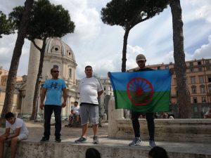 Dopo lo sgombero dell'ex baraccopoli istituzionale, alcune famiglie del Camping River hanno manifestato insieme a Nazione Rom vicino al Campidoglio, a Roma