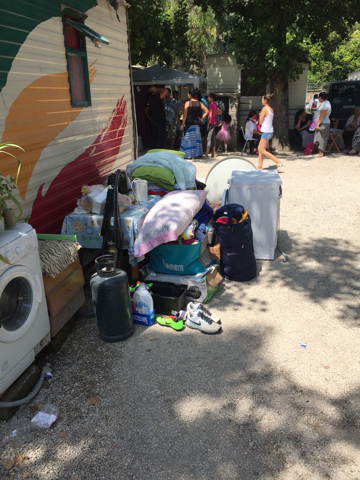 Immagini raccolte dai media durante lo sgombero, mostrano che la polizia ha rotto vetri e oggetti che si trovavano nei container, probabilmente allo scopo di impedire alle famiglie di ristabilirsi al loro interno.