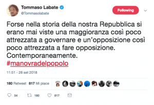 Tommaso Labate, giornalista del Corriere della Sera, ha detto: “Forse nella storia della Repubblica si erano mai viste una maggioranza così poco attrezzata a governare e un’opposizione così poco attrezzataa fare opposizione. Contemporaneamente”.