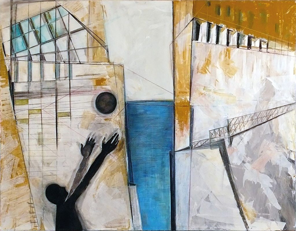 Nelle otto opere che saranno esposte, tra cui due trittici astratti lunghi tre metri, l’artista indaga con i suoi squarci prospettici il rapporto tra gli elementi della natura e della realtà urbana che l’uomo abita, con il suo carico di desideri, tensioni e paure.