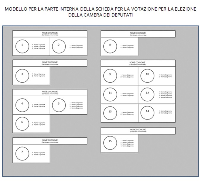 Nella legge elettorale saranno previsti due tipi di collegi: quelli uninominali, per assegnare i seggi maggioritari, e quelli plurinominali, per assegnare quelli proporzionali. I primi prevederanno l’elezione esclusivamente del candidato più votato, anche prendendo un solo voto in più di qualsiasi altro sfidante. Essi saranno disegnati in un secondo momento, suddividendo il territorio italiano in 231 collegi alla Camera (tranne Aosta, che ha in ogni caso un proprio collegio) e 102 al Senato.