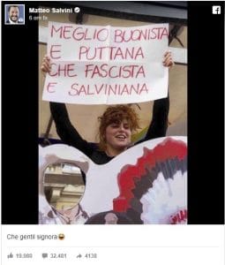 “Meglio puttana che salviniana”. E Salvini mette alla gogna sui social la studentessa che lo contesta
