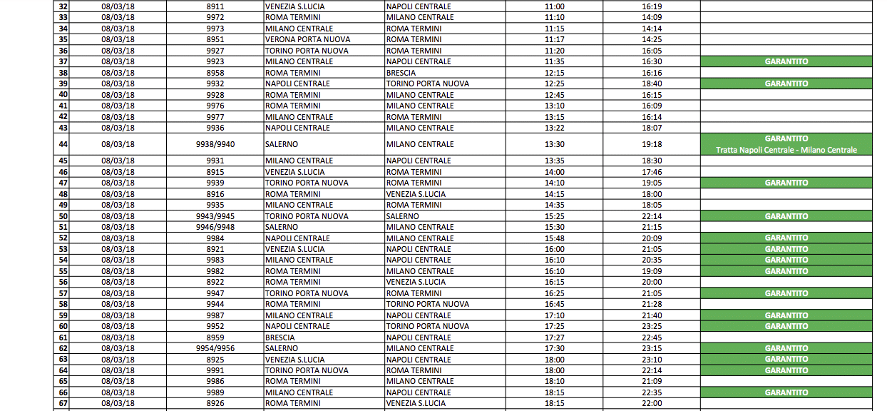 Sul sito ufficiale di Italo è stata pubblicata una lista con tutti i treni garantiti per giovedì 8 marzo.