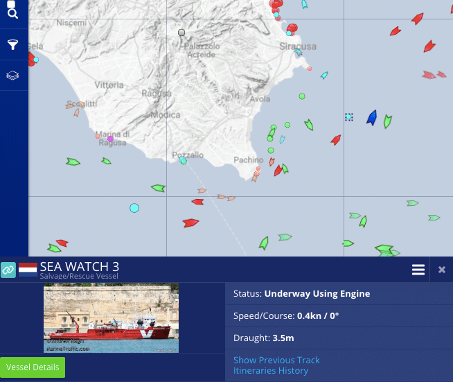 Il sindaco di Pozzallo Roberto Ammatuna a TPI: “La Sea Watch 3, come mi ha confermato la guardia costiera, si trova nei pressi di Pozzallo ma, dato il mare agitato, le grosse onde e il maltempo, l’imbarcazione si sta dirigendo alla ricerca di acque più tranquille tra Porto Palo e Siracusa”.