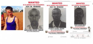 La polizia ha diramato le foto e posto una taglia su tre sospetti: Ibrahim Adan Omar, Yusuf Kuno Adan e Said Adan Abdi. La taglia è di circa 8.600 euro per chi fornirà informazioni utili per il loro arresto.