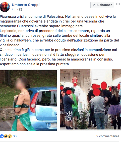 Un video horror girato, a pochi giorni dalla festa di Halloween, nel cimitero comunale di Palestrina. Poi, il sindaco Adolfo de Angelis che licenzia l’assessore e vice sindaco Manuel Magliocchetti, suo rivale alle prossime elezioni, rischiando di perdere la maggioranza nella giunta comunale. Infine, i cittadini che protestano e che prendono le parti dell’uno o dell’altro.