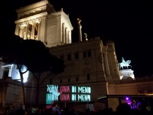 Quest’anno, dopo lo scandalo Weinstein e l’adesione al movimento #MeToo con l’hashtag #WeToogether, il movimento italiano Non Una Di Meno è riuscito a portare nelle strade di Roma tra le diecimila e le quindicimila persone secondo gli organizzatori. Una marea in movimento di donne, uomini, famiglie, ragazze e ragazzi uniti contro la violenza.