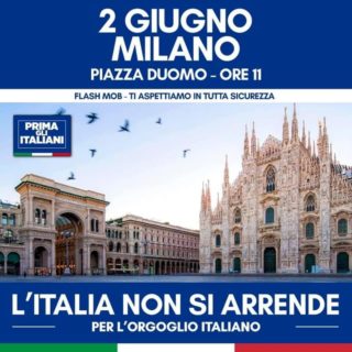 Dopo il Generale Pappalardo, tocca al capitano Salvini. Il centrodestra passerà il 2 giugno in Piazza Duomo, per una manifestazione dal titolo “L’Italia non si arrende – Per l’orgoglio italiano”. Sul manifesto c’è anche una patch con l’ormai celebre slogan “Prima gli italiani”. Repetita iuvant.