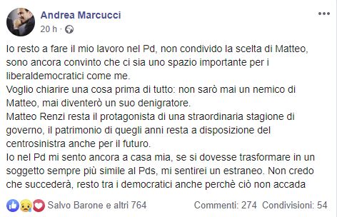 “Io penso che il progetto originario del Pd sia ancora valido, e lo dico io che nel Pd sono uno dei pochi che viene dalla cultura laica”, ha proseguito Andrea Marcucci. Ma la chiusura non è netta: “Ora bisogna continuare ad avere una relazione costruttiva con quello che sarà un nuovo gruppo”.