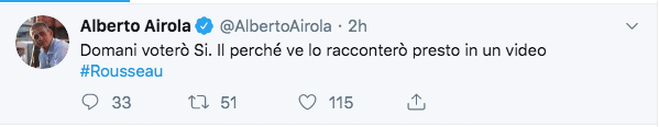 Anche Alberto Airola, senatore M5s annuncia che voterà Sì all’accordo:
