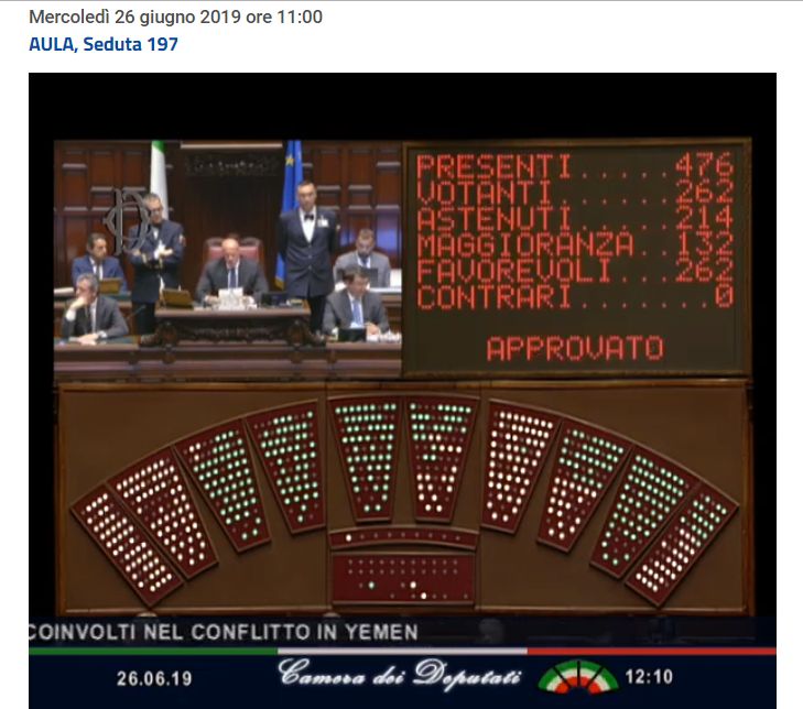 Armi Yemen mozione export – La Camera approva la mozione M5s-Lega che chiede al governo italiano di sospendere le esportazioni di bombe d’aereo e missili che possono essere usate contro i civili verso l’Arabia Saudita e gli Emirati Arabi Uniti, finché non ci saranno sviluppi concreti nel processo di pace con lo Yemen.