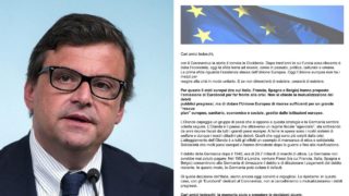 “Cari amici tedeschi, la memoria aiuta a prendere le decisioni giuste. Il vostro posto è con i grandi Paesi europei, il vostro posto è con l’Europa delle istituzioni, dei valori di libertà e solidarietà. Non al seguito di piccoli egoismi nazionali”, si conclude l’appello, “Dimostriamo insieme che l’Europa è più forte di chi la vuole debole”.