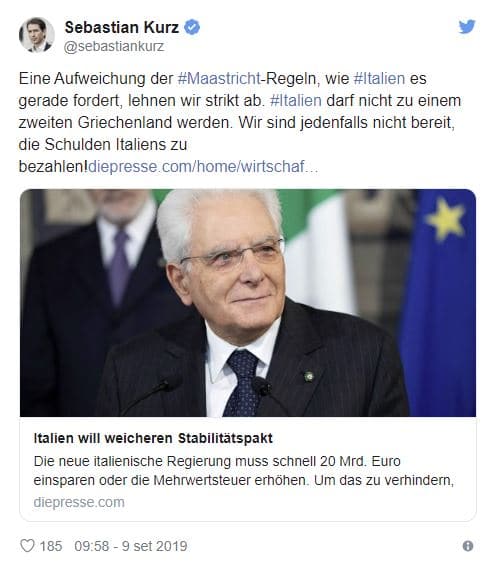 Tuttavia, qualora la decisione venisse confermata, molte anche le opposizioni. L’ex cancelliere austriaco Sebastian Kurz, leader del Partito Popolare Austriaco, ha oggi espresso il proprio dissenso su Twitter, affermando che l’Austria non pagherà i debiti dell’Italia.