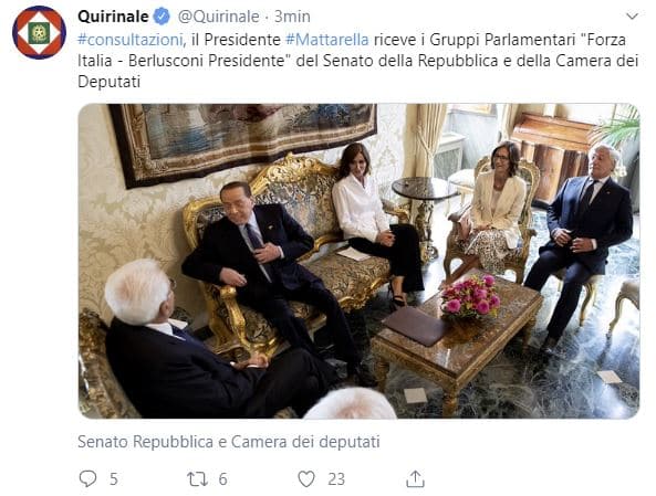Il calendario della giornata prevede incontri del capo dello stato con il gruppo di Leu alle 10,30 e alle 11 quello di Fratelli d’Italia. Nel pomeriggio poi, a partire dalle 16, Pd, Forza Italia, Lega e Movimento 5 Stelle.
