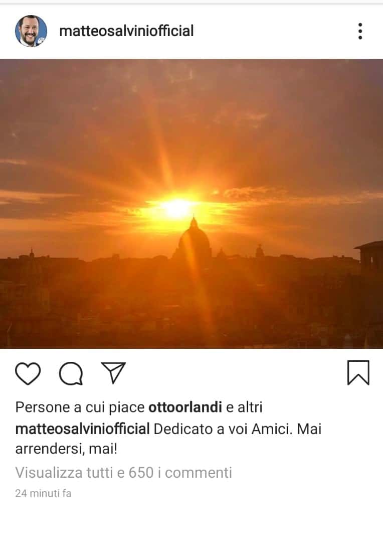 Conte contro la Lega, Salvini risponde con una foto: “Mai arrendersi”
