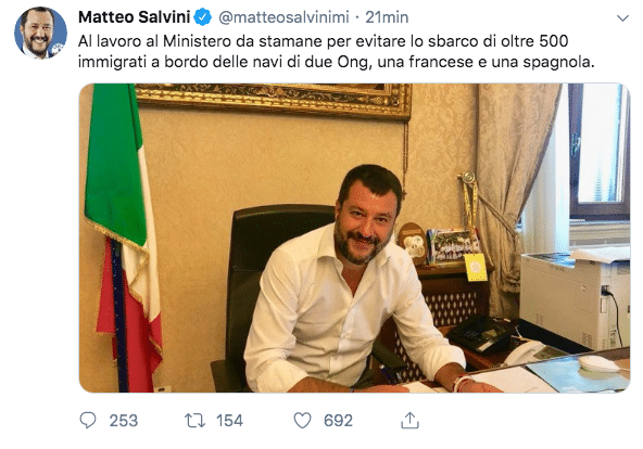 12.40 – Salvini: “Con governo Pd-M5S torneremmo a 500mila sbarchi”. “Spero che per salvare la poltrona i cinquestelle non facciano un governo con Renzi perché torneremmo ai 500mila sbarchi che il Pd regalò agli italiani negli anni passati”. È quanto afferma sui social il vicepremier e ministro dell’Interno Matteo Salvini tornando ad attaccare i suoi ex alleati di governo. Salvini è “al lavoro al Viminale da stamane per evitare lo sbarco di oltre 500 migranti a bordo delle navi di due Ong, una francese e una spagnola” (la Open Arms e la Ocean Vikings, n.d.r.).