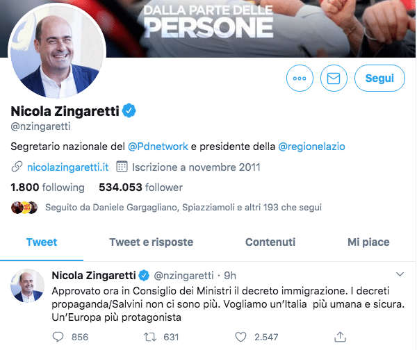 Immediate le reazioni alle modifiche del decreto sicurezza da parte dei protagonisti politici che più hanno voluto questo provvedimento. “Approvato ora in Consiglio dei ministri il decreto immigrazione. I decreti propaganda/Salvini non ci sono più. Vogliamo un’Italia più umana e sicura. Un’Europa più protagonista”, ha scritto su Twitter il segretario Pd Nicola Zingaretti.