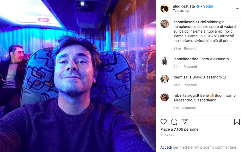 Sotto l’immagine postata su Instagram, molti suoi fan hanno chiesto ad Alessandro Di Battista se il suo rientro equivalga anche a un grande ritorno sulla scena politica italiana: “Cosa pensi di fare quando torni? Farai ancora politica o no?”, chiede una ragazza. L’ex deputato del Movimento 5 Stelle risponde così: “Assolutamente sì. Alle mie condizioni. Ovvero idee, programmi e atteggiamento. Mi interessa solo questo”.