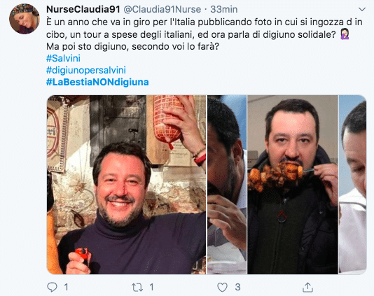 In 4mila in digiuno per Salvini. La rete lancia: #LaBestiaNONdigiuna