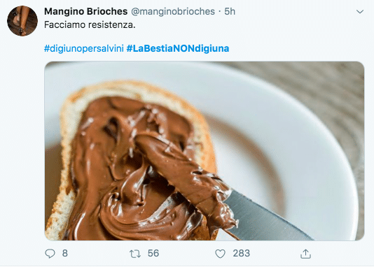 Sui social nel frattempo è partita la contro campagna #LaBestiaNONdigiuna. Migliaia di tweet, oltre 8.000, in cui gli utenti si sono sbizzarriti con emoticon e foto comiche sulla singolare iniziativa lanciata dall’ex ministro dell’Interno.