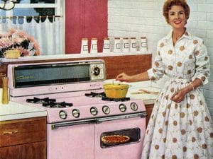 Basta pensare a Cenerentola, ma anche ai manifesti americani anni Cinquanta che ritraevano casalinghe con tacchi alti e grembiulino che – mentre sgambettano – passano l’aspirapolvere. Oppure alla pubblicità di oggi, dove c’è una mamma che fatica e prepara la colazione per tutti – intristita perché nessuno la ringrazia – ma poi raggiante quando trova in cucina un disegno con scritto “Sei la mamma migliore del mondo”.