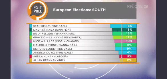 I dati disponibili finora – I risultati ufficiali delle elezioni in Irlanda usciranno domenica 26 maggio nella notte, esattamente insieme agli altri 27 paesi europei. Ciò che è possibile consultare sono gli exit poll.