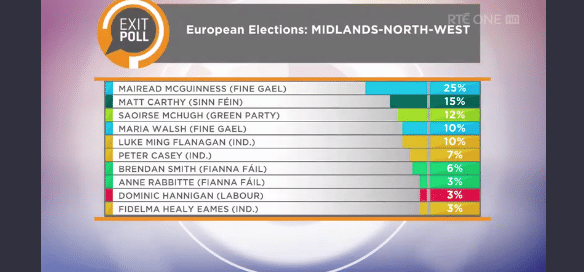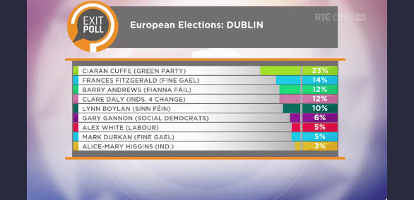 Grande successo dei Verdi a Dublino, dove sono risultati il partito più votato. Nelle altre due circoscrizioni è in testa il partito europeista di centro destra, Fine Gael, del premier Leo Varadkar.