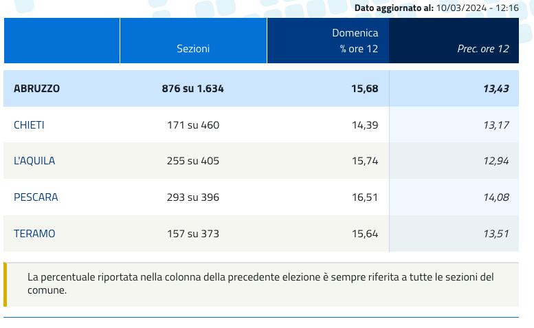 Elezioni regionali Abruzzo affluenza