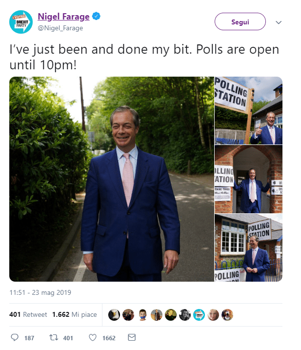 Secondo le previsioni ci sarà invece un boom del partito di Nigel Farage, quello pro-Brexit.