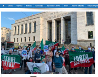Nonostante la mascherina, si riconosce al centro della scena Fabrizio De Pasquale, capogruppo forzista a Palazzo Marino, il quale parla di “giovani, donne, seniores ed eletti di Forza Italia” che si sarebbero riuniti “spontaneamente” di fronte a Palazzo di Giustizia per gridare “Berlusconi senatore a vita!”. Ma il grido è decisamente flebile, anche perché nell’incerta inquadratura si contano solamente 11 persone: abbastanza per sfidare i magistrati in una partita di pallone, ma non certo per far breccia nell’opinione pubblica.
