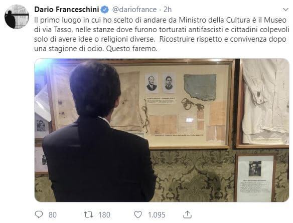 Il ministro dei Beni culturali del Conte bis riparte dal Museo della Resistenza di via Tasso a Roma
